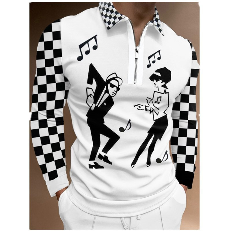 2022 rudens ir žiemos nauja nepriklausoma stotis 3D spausdinimo marškinėliai ilgomis rankovėmis vyriški POLO marškinėliai su užtrauktuku - super gražūs marškinėliai coliais, dėvėkite prabangos jausmą~
