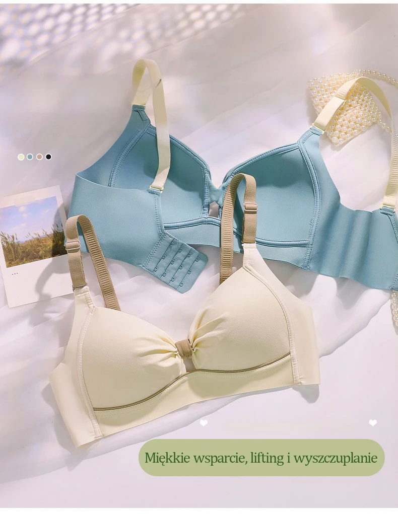 Rekomenduojama liemenėlė be apačios: pašalina skausmą ir diskomfortą, kurį sukelia plieninio žiedo trynimasis į odą ir nepakankama krūtų atrama. Suteikia gerą atramą, augimą ir formą bei išlaiko tobulą krūtų formą.