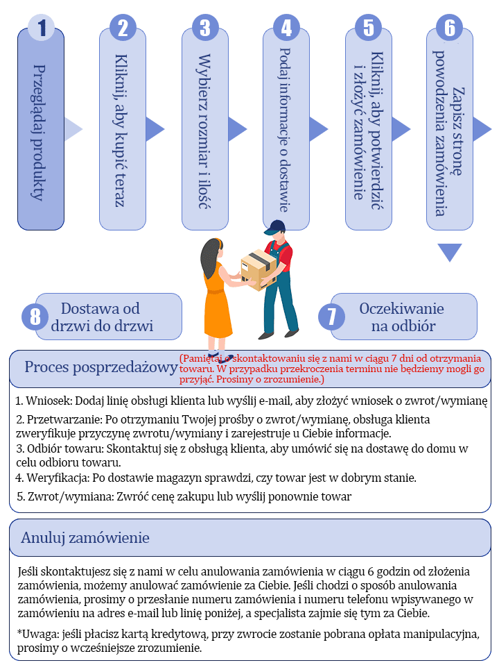 Įveskite teisingą pristatymo adresą (įskaitant adresą, namo numerį ir pašto kodą); Priešingu atveju negalime garantuoti prekių pristatymo. Dėkojame už bendradarbiavimą!