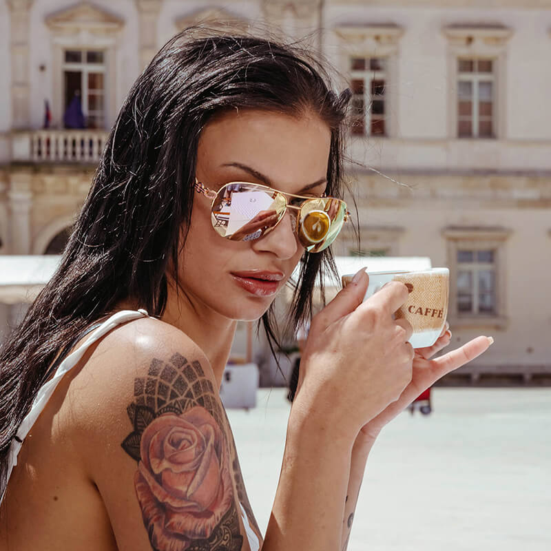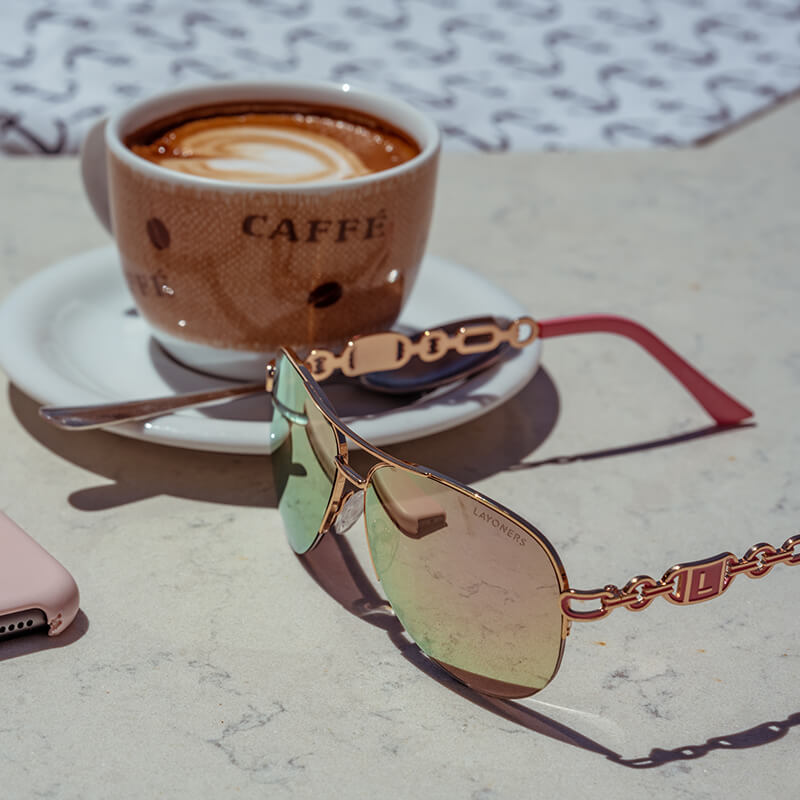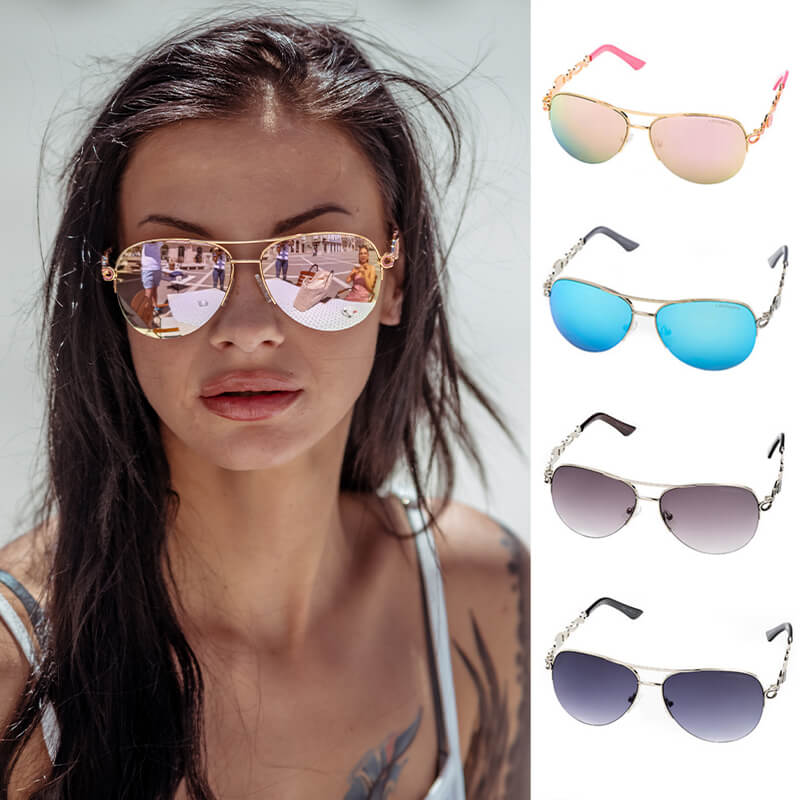 Ideaalne kombinatsioon sinu armsale poolele! Fiona päikeseprillid täiustavad teie garderoobi klassikalise disainiga, mida täiustab ketidisain käsivartel, ekstsentrilistes värvides peegelklaasid ja täielik UV400 kaitse.