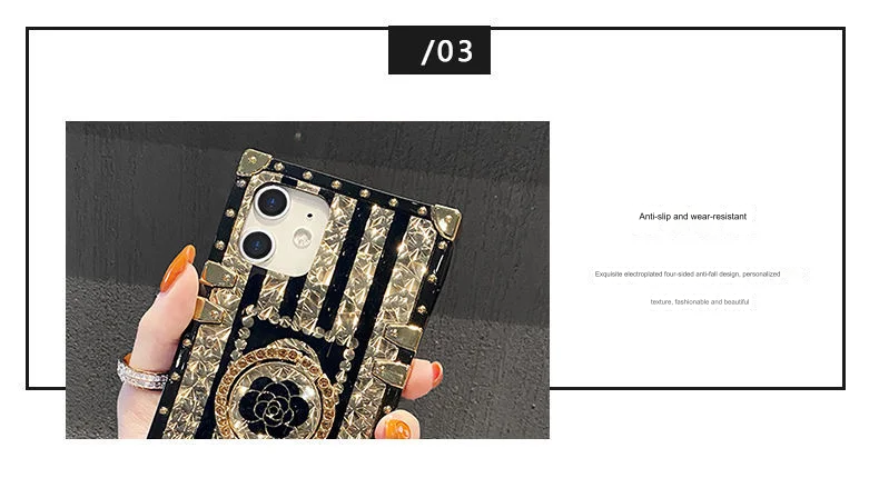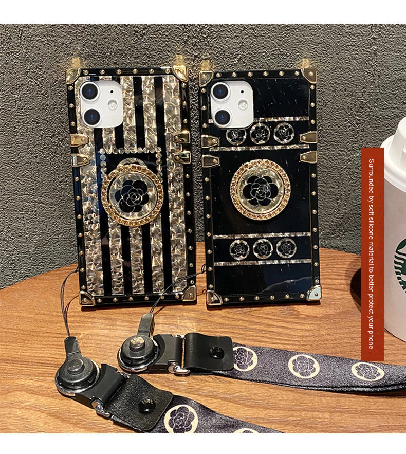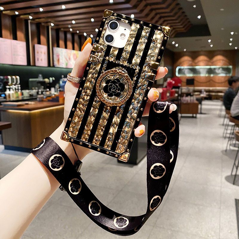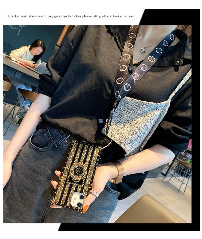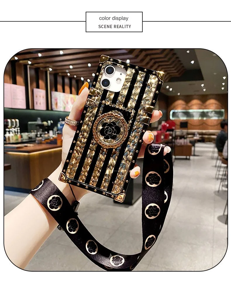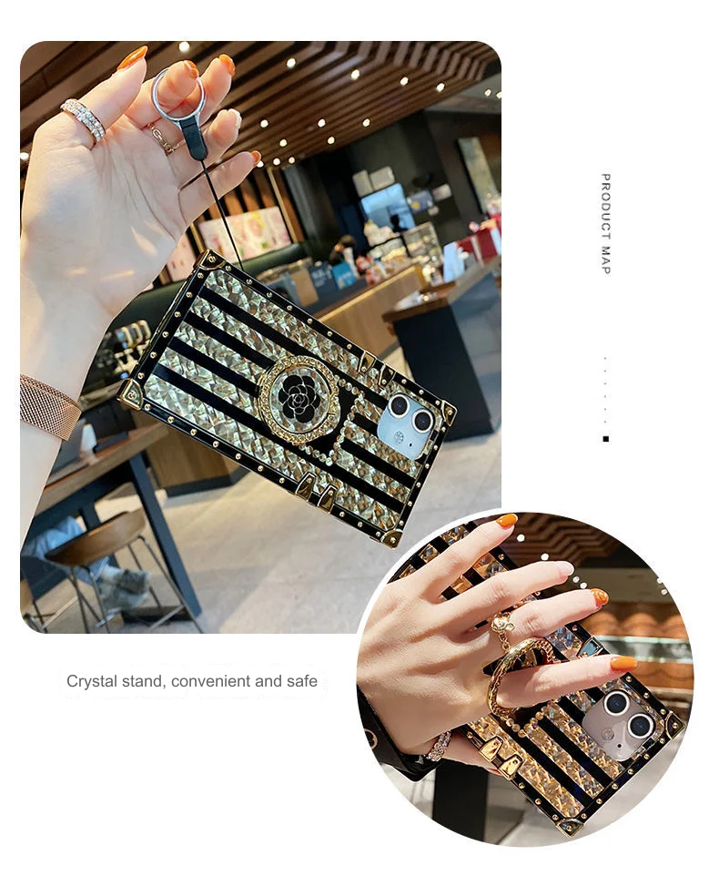 „📱Aukštos klasės mados prekės ženklo Fashion Square Diamond stovo telefono dėklas, skirtas iPhone💍