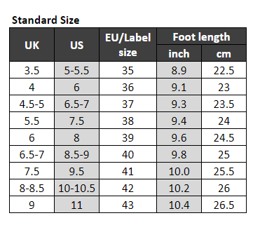 - Pasirinkite tinkamą dydį pagal savo pėdos ilgį.