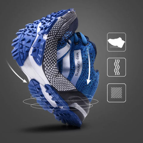 Atraminiai kvėpuojantys bėgimo bateliai vyrams pagaminti iš kvėpuojančios tinklinės medžiagos, kuri užtikrina efektyvų oro srautą į ir išeina, todėl kojos jaučiasi patogiai bėgiojant lauke.